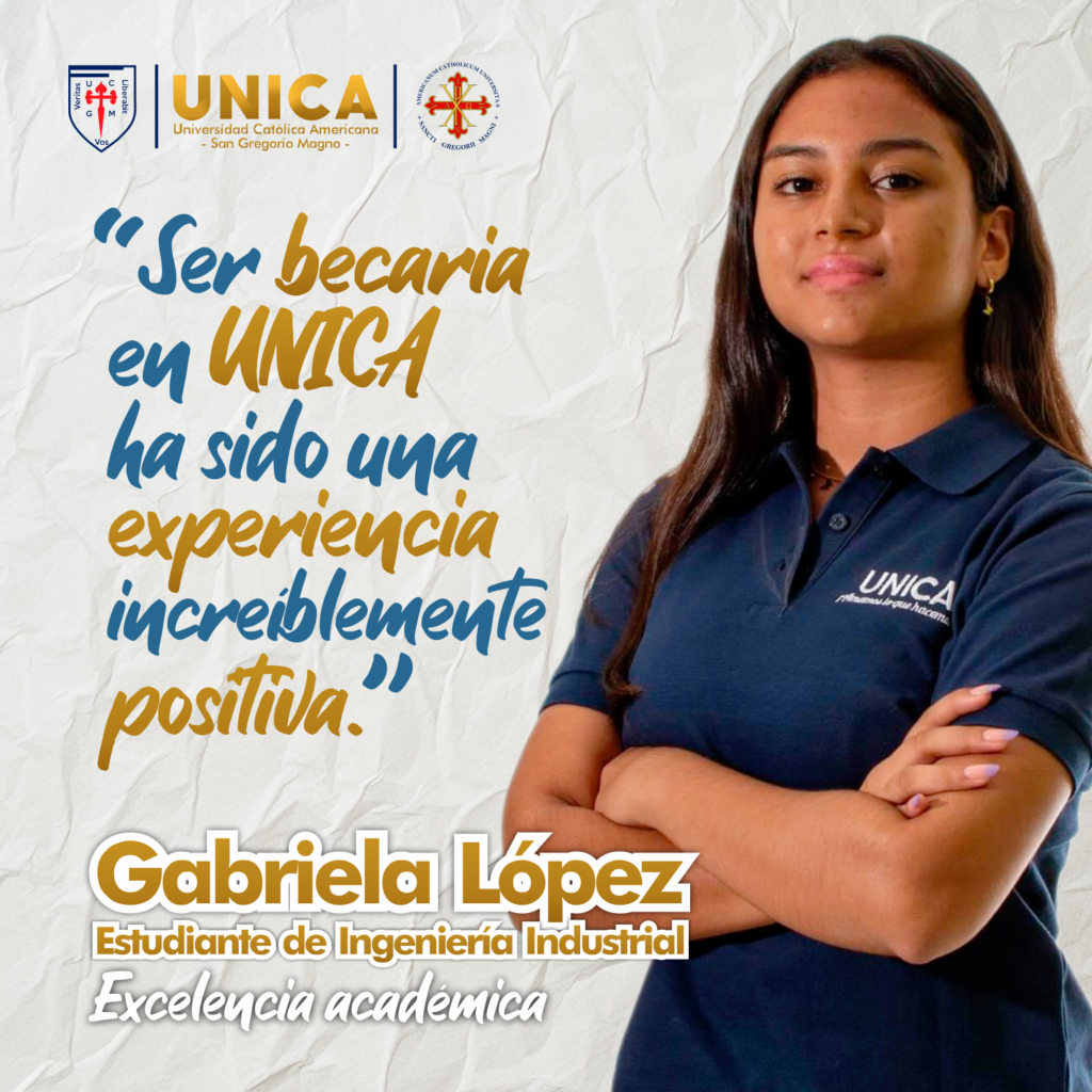 Gabriela López, estudiante de Ingeniería Industrial en la Universidad Católica Americana San Gregorio Magno (UNICA), comparte su experiencia como becaria en nuestra prestigiosa institución.