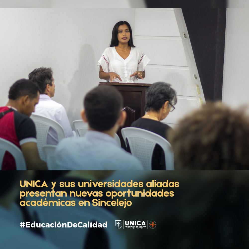El pasado martes 29 de abril, la Universidad Católica Americana – UNICA, junto a sus universidades aliadas, celebró en Sincelejo un evento de gran impacto académico: el Conservatorio y Lanzamiento de la Propuesta de Formación Posgradual. Dirigido a profesionales de la Educación, Humanidades, Ciencias Sociales y de la Salud, este encuentro abrió las puertas a nuevas oportunidades de desarrollo académico con maestrías y doctorados de alta calidad, ofreciendo un 100% de ayudas financieras para programas en la región.