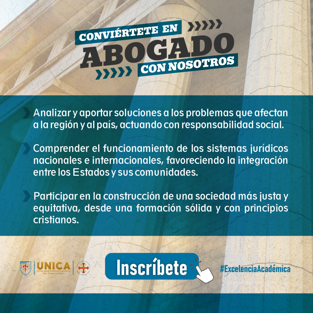 En la Universidad Católica Americana San Gregorio Magno – UNICA, formar abogados es mucho más que impartir conocimientos: es encender un compromiso ético con la justicia, la equidad y el desarrollo social.