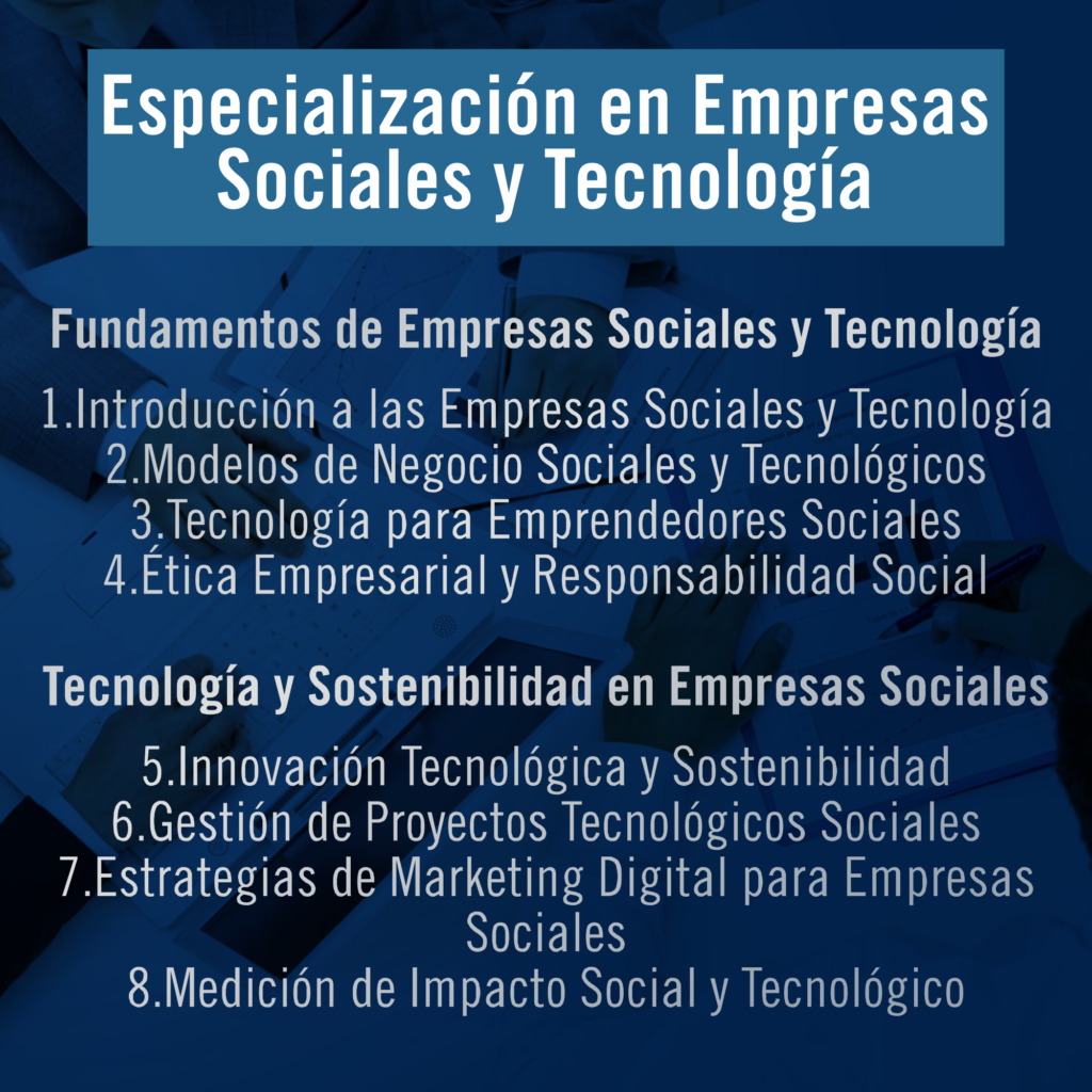 Además de los cursos mencionados, se podría ofrecer una especialización opcional en áreas como Empresas Sociales y Tecnología, Empresas Sociales y Salud, o Empresas Sociales y Educación. Los estudiantes podrían elegir cursos electivos en función de sus intereses específicos.