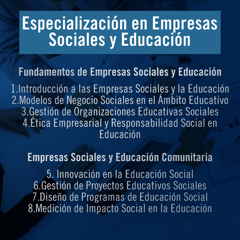 Formación Integral: Ofrecemos una formación completa que combina teoría y práctica en el ámbito de las empresas sociales y la educación, preparando a nuestros estudiantes para ser líderes en ambos campos.